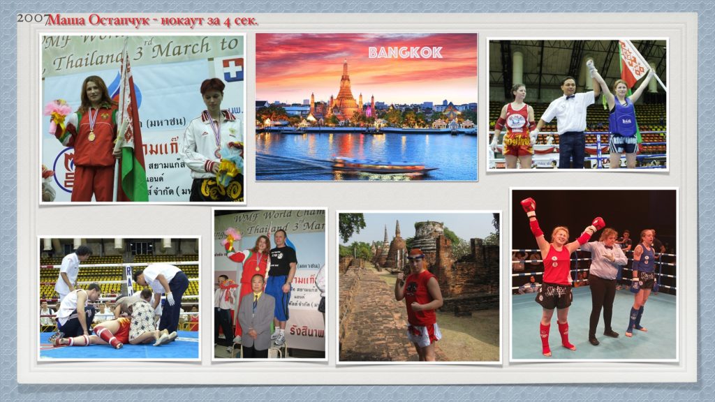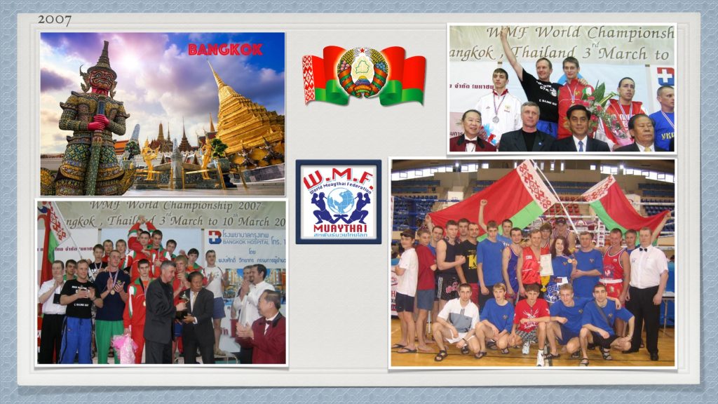 СБОРНАЯ БЕЛАРУСИ ЗАВОЕВАЛА 1 КОМАНДНОЕ МЕСТО. Бойцы клуба «Кик Файтер» завоевали на этом чемпионате 3 золотые, 3 серебряные и одну бронзовую награду. Чемпионами стали: Андрей Кулбин — 63,5кг 1место Мария Остапчук — 63,5кг 1место Егор Мордас — 81кг (юниоры) 1место серебро завоевали: Алексей Попов — 54кг 2место Андрей Заяц — 51кг (юниоры) 2место победил в полуфинале бойца из Таиланда Павел Ревтович — 71кг (юниоры) 2место бронзу завоевала Елена Кучинская — 60кг