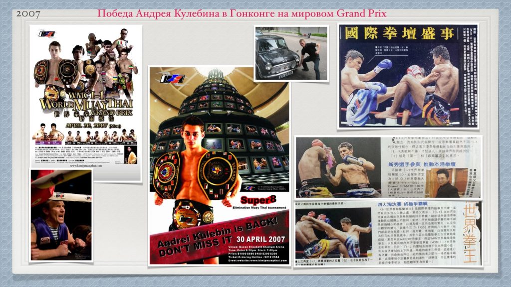 Андрей Кулебин выиграл Гран При I-1 2007 года. В первом бою он выиграл техническим нокаутом у тайца Камбоджийского происхождения Чайвана. Во втором бою нокаутировал тайца Сантичая. И в финале выиграл техническим нокаутом у Рудольфа Дурицы из Словакии.