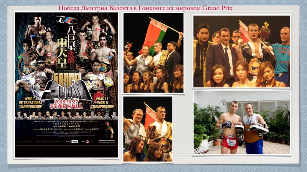 Дмитрий Валент победил на Grand Slam I-1 в Гонконге и стал Чемпионом мира среди профессионалов по версии WMC. В первом бою он победил по очка Канадца Шена Кемпбела , а во втором бою нокаутировал канадца Сигной Ситполека.